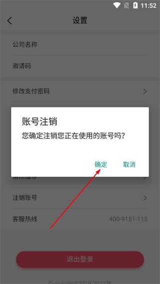 4、在彈出的賬號注銷提示框中點擊確定,完成賬號注銷操作。