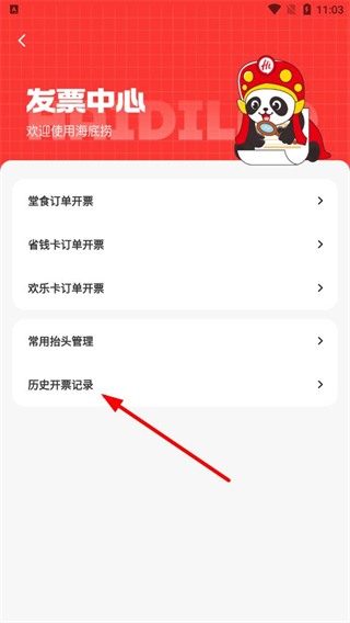 3、在發票中心頁面,選擇歷史開票記錄選項,進入開票歷史頁面。