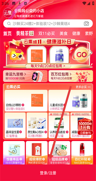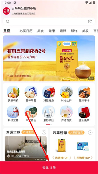 1、在進入到云集首頁中,可以點擊下方登錄/注冊按鈕,準備展開登錄操作。
