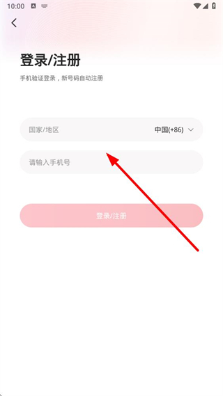 3、在進入到登錄注冊頁面中時,可以點擊輸入框填寫手機號碼后,點擊按鈕進行登錄。