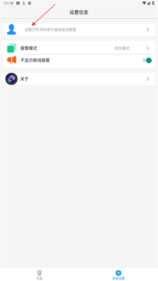 1、在設備列表頁面,點擊底部導航欄的系統設置選項,進入設置信息界面。