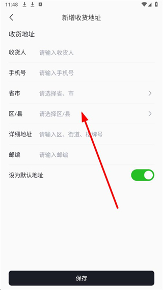 4、在新增收貨地址頁面,依次填寫信息,確認后點擊保存完成地址添加。