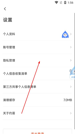 3、在設置頁面中,選擇隱私管理選項。
