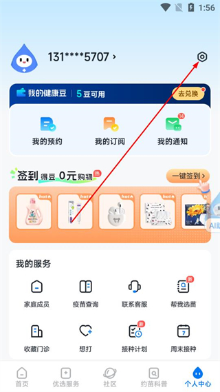 1、打開約苗app,點擊底部導航欄中的個人中心選項。