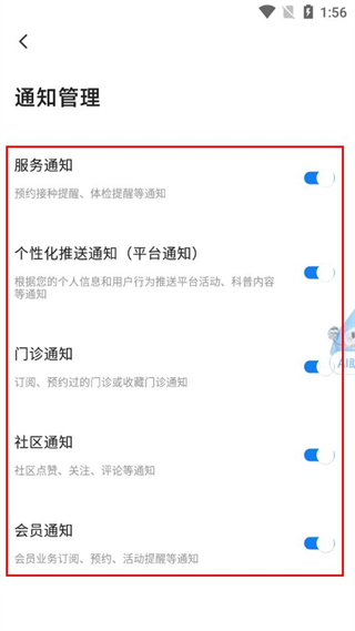 5、在通知管理頁面,開啟對應通知的開關,即可設置提醒。