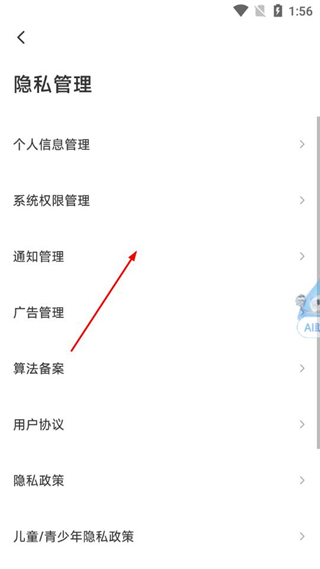 4、進入隱私管理頁面后,點擊通知管理選項。