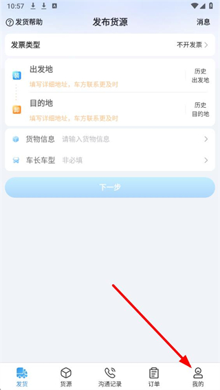 1、打開特運通貨主應用,點擊頁面底部我的選項,進入個人頁面。