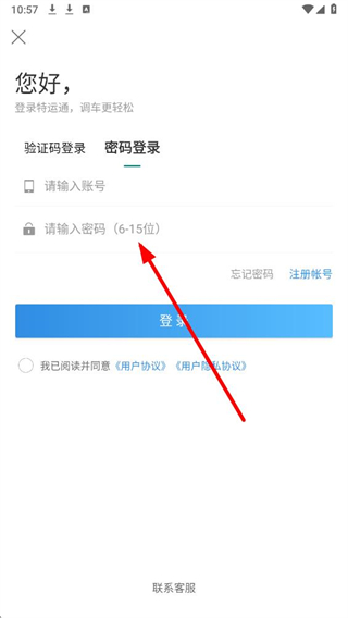 3、在密碼登錄頁面,輸入賬號和密碼,勾選協議后,點擊登錄按鈕,即可完成密碼登錄。