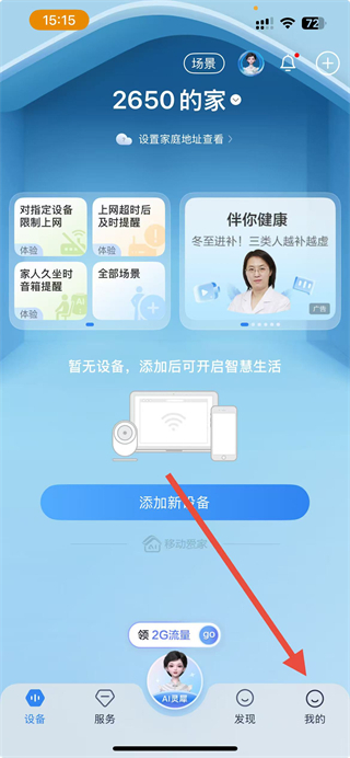 1、在移動愛家界面,底部的我的選項并點擊,進入我的頁面。