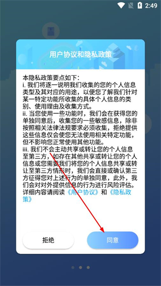 1、打開華中大體育APP,在用戶協議彈窗中點擊同意。