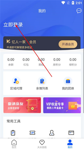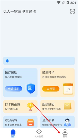 1、打開億人一家app首頁,點擊底部我的選項,進入個人中心頁面。