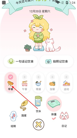打卡減脂日程,一鍵記錄飲水/體重/三餐~