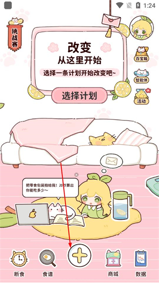 p>1、打開檸檬輕斷食,點擊底部中間的+進入記錄頁面。