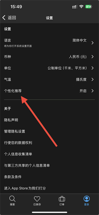 2、在設置頁面中,找到個性化推薦選項并點擊,進入個性化推薦的功能設置界面。