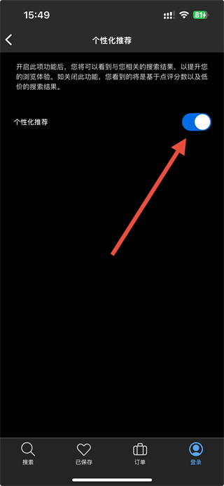 3、在個性化推薦頁面,找到右側的功能開關按鈕,點擊該開關按鈕,即可完成個性化推薦功能的關閉操作。