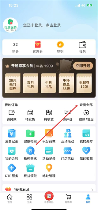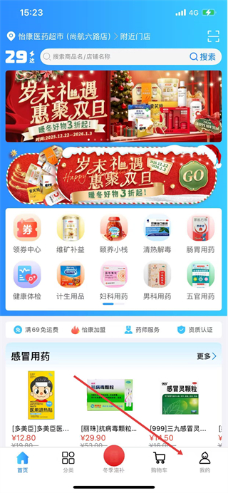 1、打開怡康到家APP,點擊底部導航欄的我的選項。