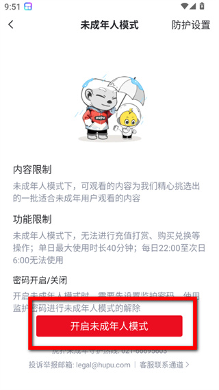 4、在未成年人模式頁面,點擊開啟未成年人模式按鈕,完成操作。