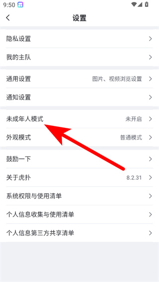 3、在設置界面,點擊未成年人模式選項,進入對應頁面。