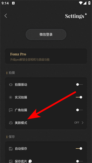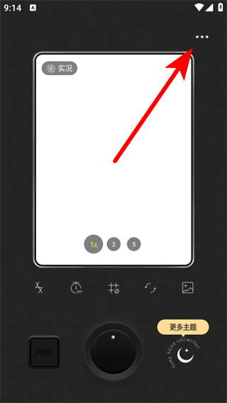 1、打開Fomz相機APP,點擊右上角三點圖標進入設置頁面。