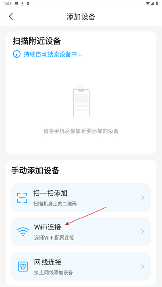 2、進入添加的界面內,點擊下方WiFi連接的功能按鈕。