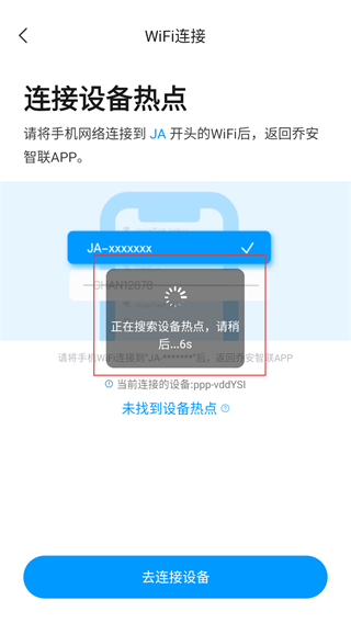 3、進入該頁面內,呈現正在搜索設備的提示,需稍后操作。
