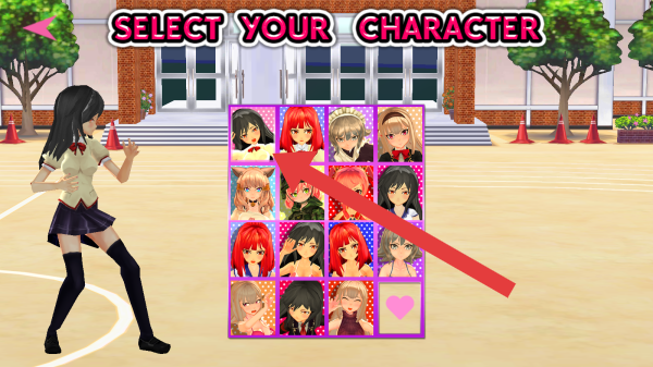 2、畫面展示多個動漫風格女角色,可用于高校格斗的角色選用,背景是校園操場場景。
