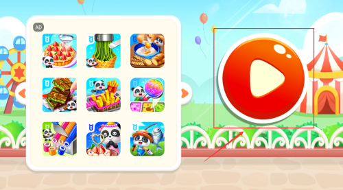 1、點擊紅色播放按鈕,進入美食主題游戲選擇界面。