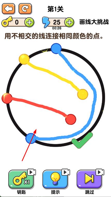 2、通過滑動屏幕,為相同顏色的點繪制連線,在繪制過程中,注意調整連線的路徑,確保不同顏色的連線不會相交。