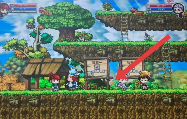1、進入游戲界面后,創建或者加入隊伍玩家一、玩家二標識,熟悉角色屬性HPMP條與背包功能,是組隊的基礎。