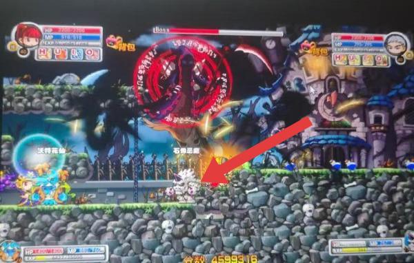 3、推進到BOSS關卡紅圈特效怪物時,分工配合參與者輸出、寵物抗傷,關注的血條及時用背包道具來回血。