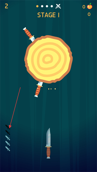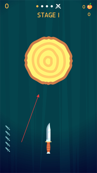 1、STAGE1時,瞄準旋轉木盤,找準時機發射飛刀,讓飛刀插入木盤。