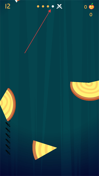 4、插滿飛刀后木盤破碎,瞄準上方進度點,推進通關進程。