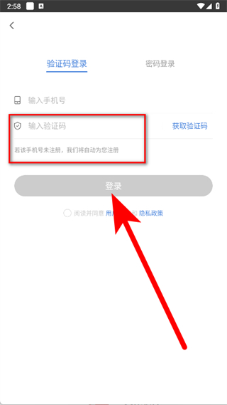 4、輸入收到的驗證碼,接著點擊登錄按鈕,完成注冊操作。
