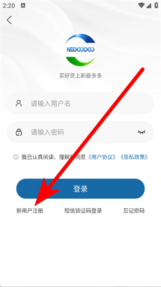 3、在登錄頁面,點擊新用戶注冊,進入注冊信息填寫頁面。
