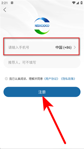 4、輸入手機號,勾選后,點擊注冊,完成賬號注冊。