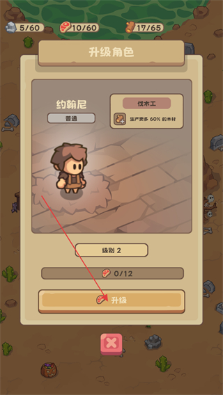 4、點擊右下角查看角色信息,花費食物可以升級角色等級提高生產量。