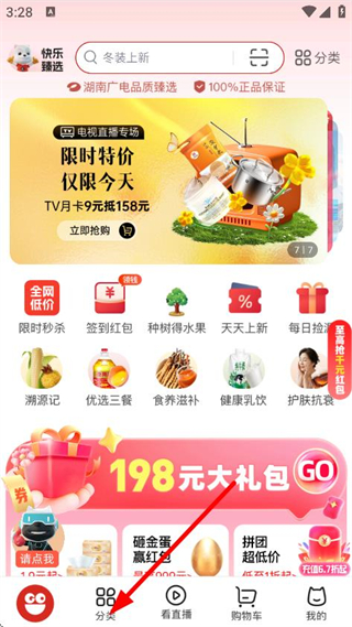 1、在APP首頁,點擊底部分類,進入商品分類頁面。