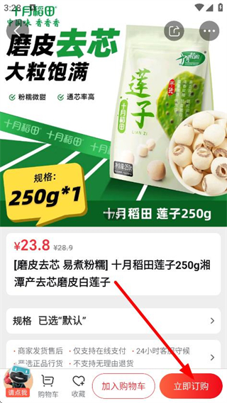3、在商品詳情頁,點擊立即訂購,進行商品購買操作。