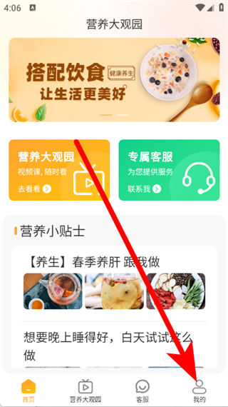 1、打開營養大觀園,點擊底部導航欄我的。