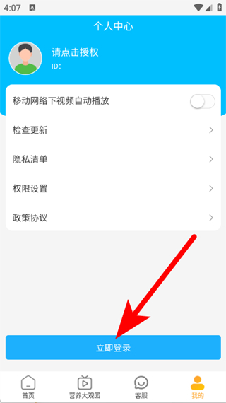 2、在個人中心頁面,點擊立即登錄,進入登錄頁面。