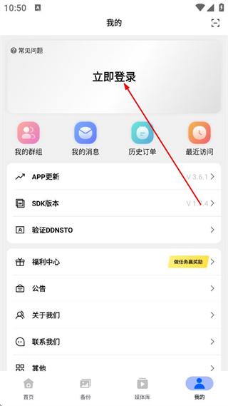 2、在個人中心頁面,點擊立即登錄,進入登錄選擇頁面。