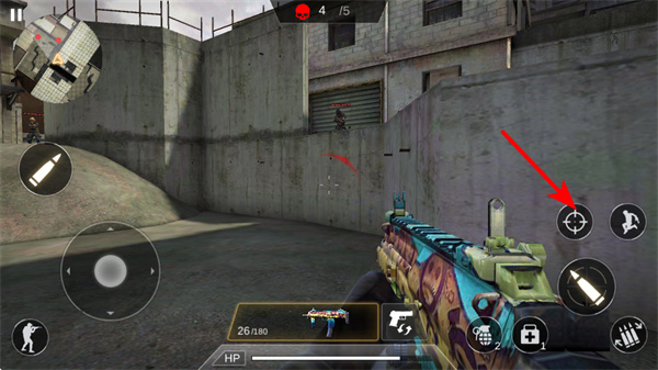 3、點擊瞄準按鈕可開啟精準射擊模式,瞄準遠處敵人時需保持穩定,提升了射擊的命中率以快速消滅敵人。