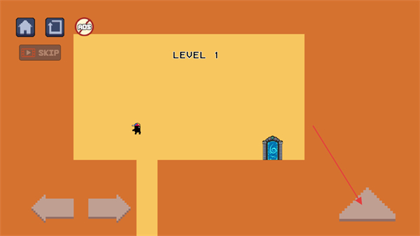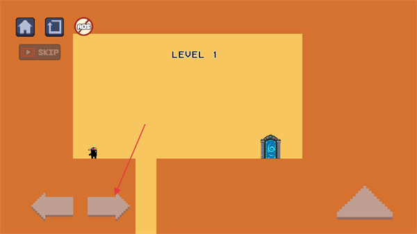 1、進入游戲第一個新手關卡,通過點擊長按左下角箭頭按鈕控制角色的移動。