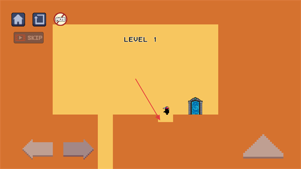 2、點擊右下角的三角形按鈕控制角色跳躍,躲避障礙或坑洞。