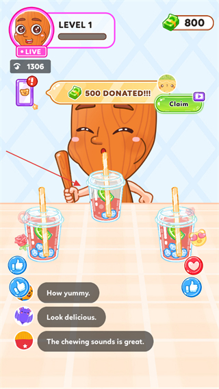 4、拖動飲品送到薩胡爾的嘴邊進行吃播,薩胡爾會發出吸果汁的聲音。