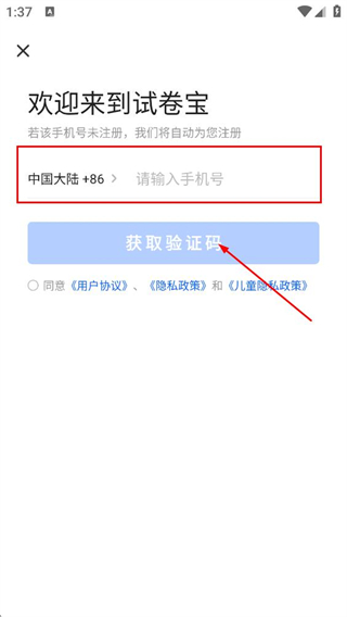 3、在登錄界面,輸入手機號,勾選同意后獲取驗證碼。