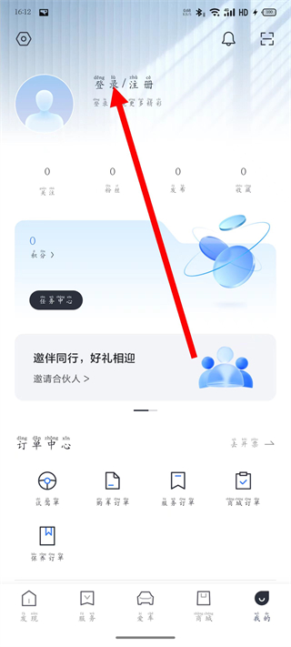 2、在個人頁面,點擊登錄注冊,進入登錄頁面。