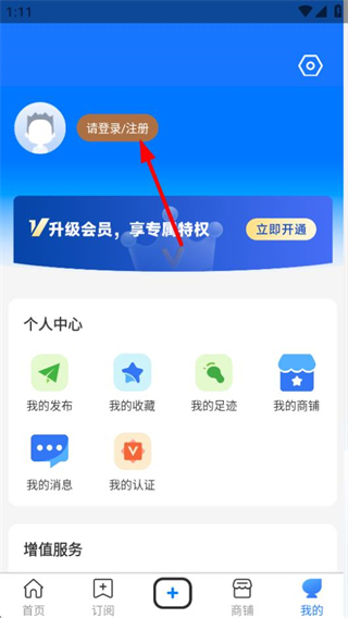 2、進入我的頁面后,點擊請登錄注冊區域,可進入登錄界面。