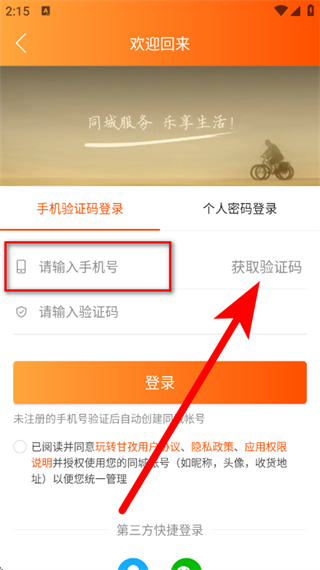 3、在手機驗證碼登錄頁面,輸入手機號后,點擊獲取驗證碼。
