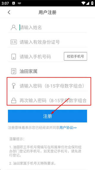 4、在注冊頁面,設置密碼并再次確認,點擊注冊,即可完成賬號注冊。
